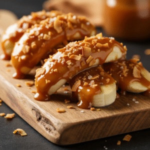 Mordidas de Banana Caramelizada Salgada com Coco Tostado
