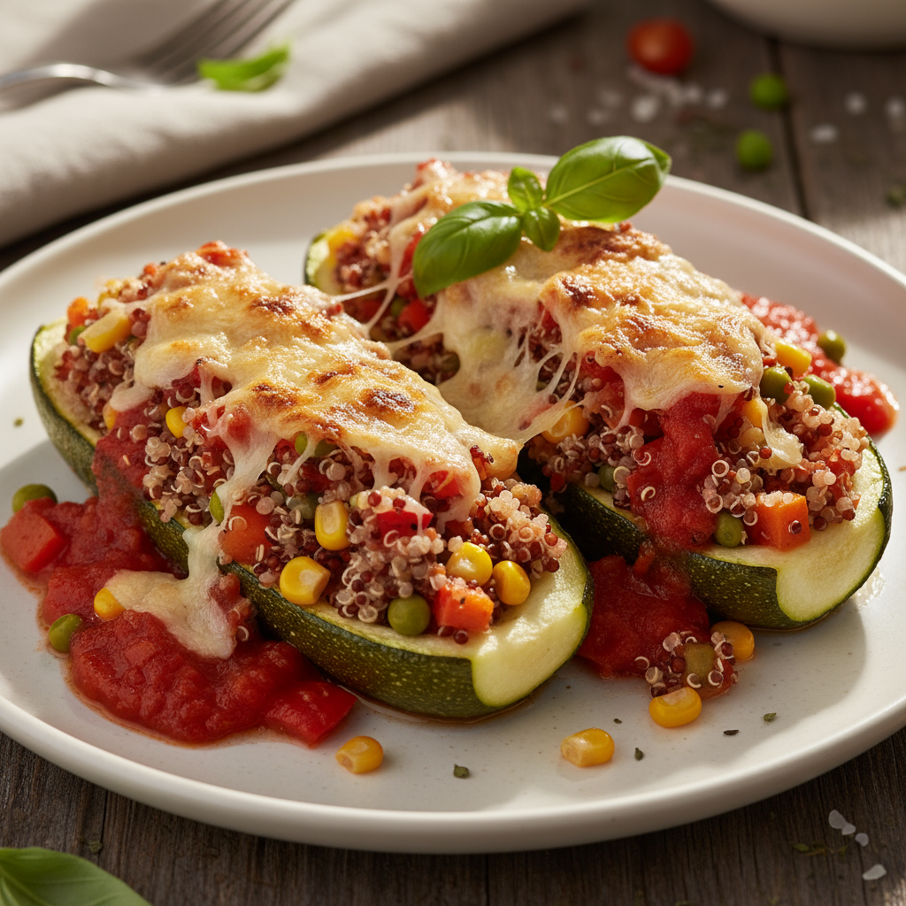 Esta receita de Abobrinhas Recheadas com Quinoa e Legumes ao Molho de Tomate Fresco é uma opção leve, nutritiva e cheia de sabor para quem busca uma refeição saudável e reconfortante. A quinoa, rica em proteínas e fibras, combina perfeitamente com a doçura dos legumes e a acidez do molho de tomate fresco, criando um prato equilibrado e delicioso. Ideal para um almoço ou jantar especial, esta receita é versátil e pode ser adaptada com os legumes de sua preferência.