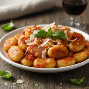 Nhoque Dourado ao Molho Cremoso de Tomate e Manjericão