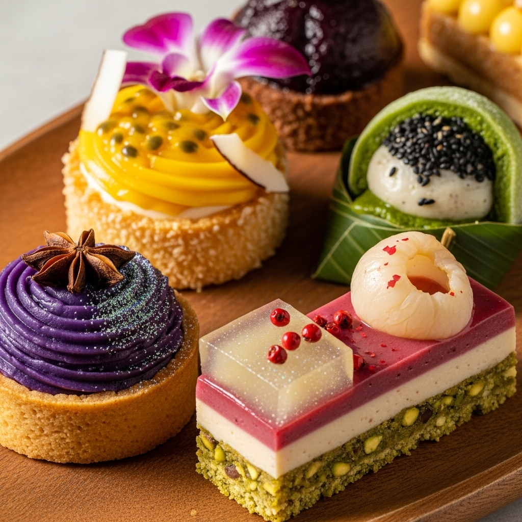 Embarque em uma viagem culinária aos trópicos com estas Delícias Tropicais Encantadas, uma coleção de mini-doces que são verdadeiras obras de arte. Cada peça é uma sinfonia de cores vibrantes, texturas delicadas e sabores exóticos, inspiradas na exuberância da flora e fauna tropical. Com bases crocantes, recheios cremosos de frutas raras e coberturas aveludadas com toques florais e de especiarias, estas delícias são um convite a uma experiência sensorial inesquecível. Perfeitas para um evento especial ou para um momento de puro deleite.